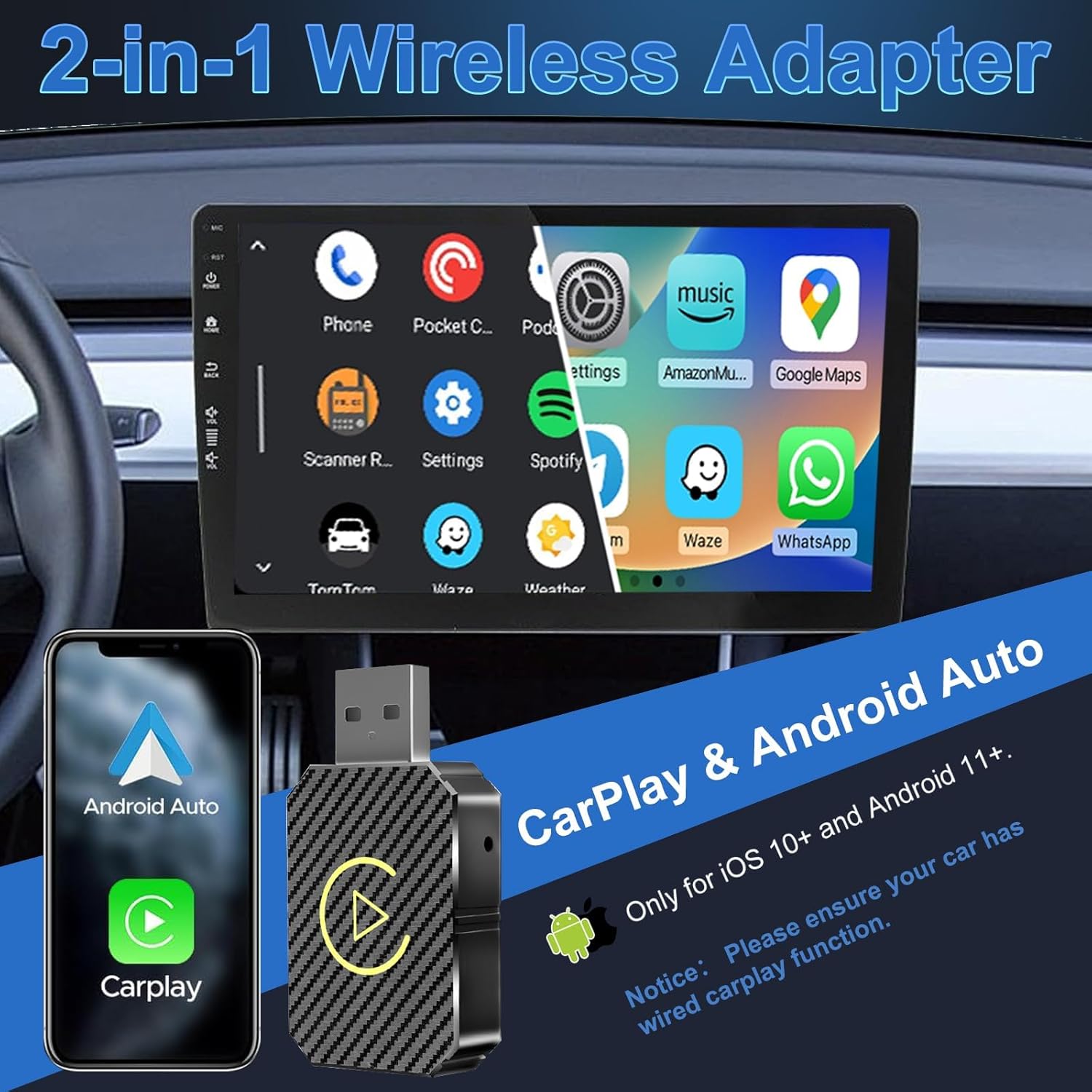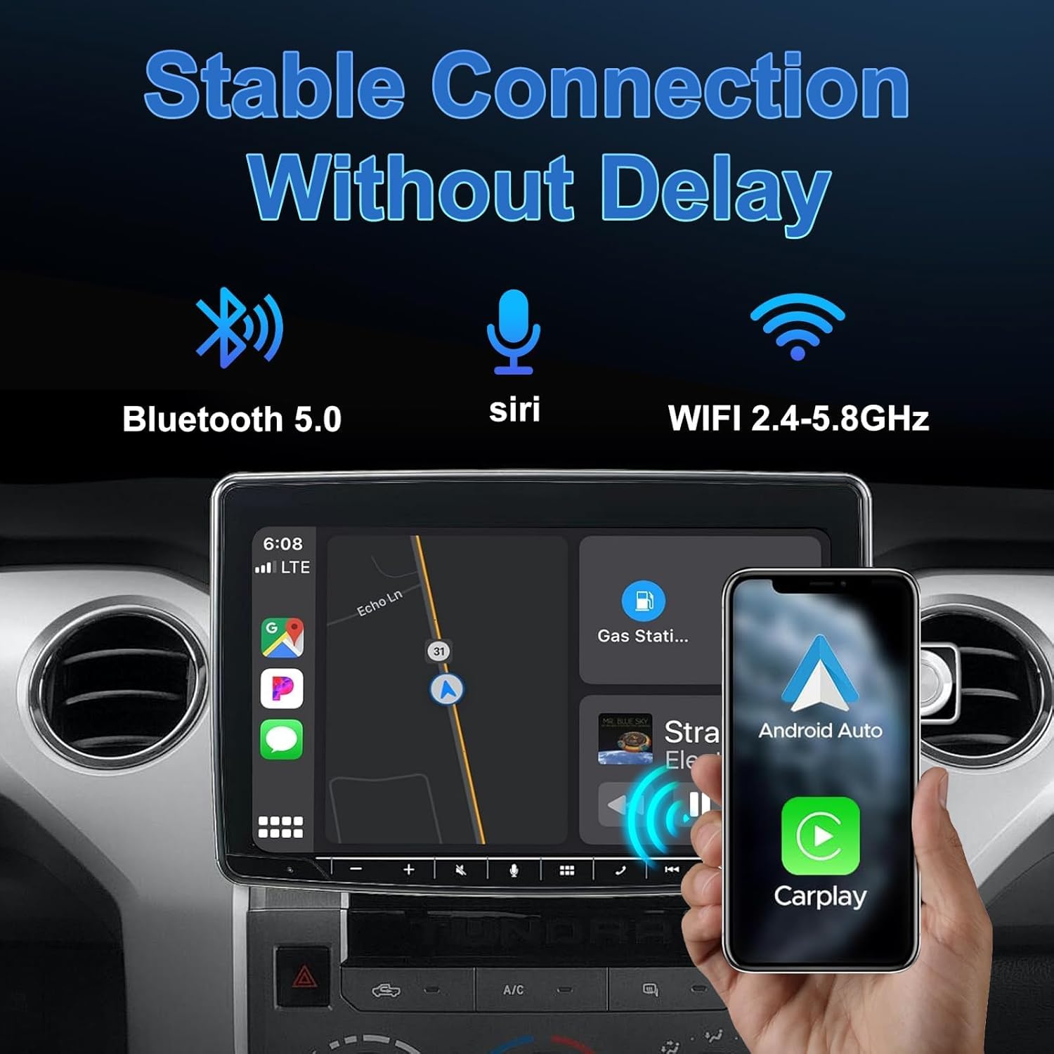 [More Stable Connection] CarPlay adapter features 2024 newly upgraded 5.0 chips and processors, delivering a powerful, rapid, and stable wireless connection while reducing interruptions and delays during use. This CarPlay wireless adapter also supports voice control, steering wheel, touch screen, and knob operation.